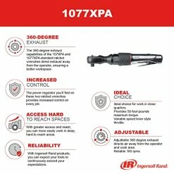 - EFFICIENT 1/4 RATCHET WRENCH: The sealed head of the ratchet housing prolongs the life of the compact air ratchet; Consumes a low 3.1 CFM and outputs 90 PSI for even torquing