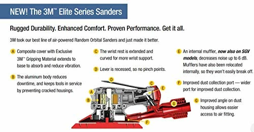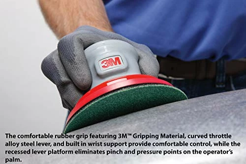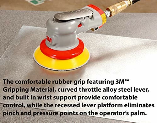One of the best orbitals I’ve ever used hands down. I had the luxury of using this model at work before I purchased one for myself and I’m glad I did. You get what you pay for and it’s worth every penny. One of the features I like about this model is where the regulator is located. It’s a 3 position regulator that sits right next to your thumb and is easy to adjust speeds. Another feature I like about it is that the valve pivot point is recessed into the tool. Other sanders I’ve used have had the pivot point of the valve above the tool which is a pinch point. I have been pinched, not badly, but enough to be annoying. This 3M model fixes that problem with the recessed pivot point and is very comfortable and easy to use.The only downside I can think of is that if you are looking to keep the sanding mess to a minimum, this isn’t the model to go with.I normally work at a downdraft table so it isn’t an issue for me.Luckily, 3M also makes a model with a vacuum attachment and I’m sure it’s just as great as this one. Happy Sanding!