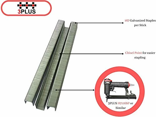 3PLUS 71/06 22 Gauge Galvanized Fine Wire Staples, 10,000 per box. Crown Size: 3/8-Inch (9 mm), Leg Length: 3/8-Inch (10 mm).