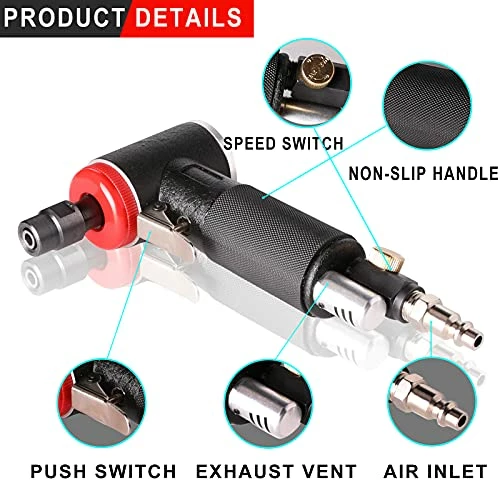 - γAdjustable Speedγ Pneumatic Die Grinder speed can be adjusted by a knob, easy to use to meet the functional needs in different scenarios.