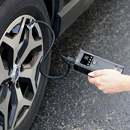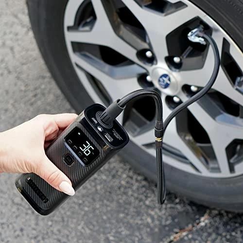 - AIR COMPRESSOR – This powerful portable air compressor can top off all four vehicle tires as well as inflate bike tires, balls, pool floats, and more! With an impressive 150PSI and automatic shut-off, it’s never been more convenient to inflate something from anywhere!