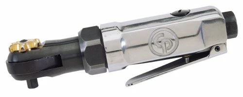 The Chicago Pneumatic 1/4-Inch Drive Air Ratchet is ideal for work under the dashboard, small engine repair, and all small fasteners. Designed for greater reach in confined areas, this ratchet delivers a working torque of 5 to 15 ft./lbs. and a free speed of 200 RPM. The maximum torque by hand is 30 ft./lbs. This compact and lightweight air ratchet provides easy speed control throughout its range, a forward/reverse button for one finger directional changes, and a square handle design for positive grip. The ratchet measures 6-1/2 inches.
