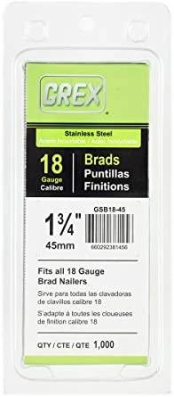 These grex 18 gauge brads are made of grade 304 stainless steel. This makes them suitable for most outdoor applications. These are made the same way as our galvanized 18 gauge brads. Durable yet flexible collation minimizes strip fragmentation