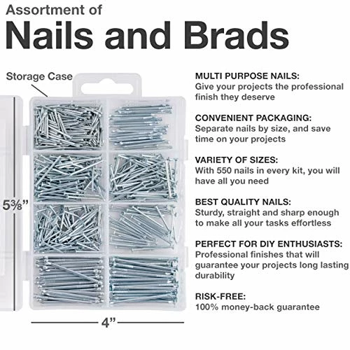 - – VARIETY OF SIZES: The nail set includes nails of many sizes to suit all your woodworking projects and to make your job hassle-free. With 550 nails in every kit, you will have all you need in plenty.