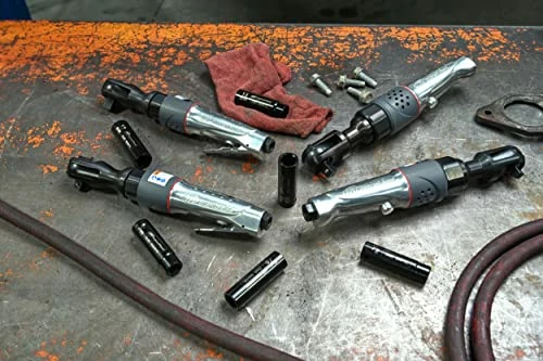 1/2-inch ratchet wrench with 360-degree adjustable exhaust to direct air away from operator and work.