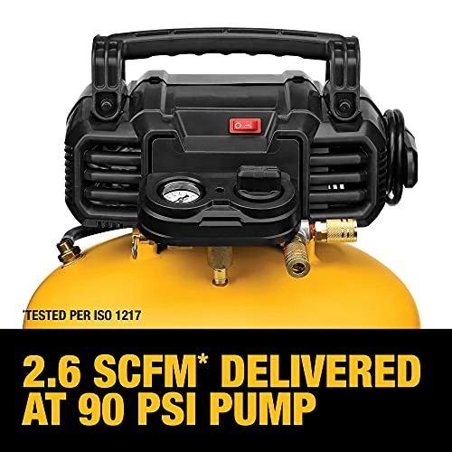 - 165 max PSI 6.0 gallon tank (22.7 L) and 2.6 SCFM delivered @ 90 PSI pump, enable long tool run time with quick recovery for the portable air compressor