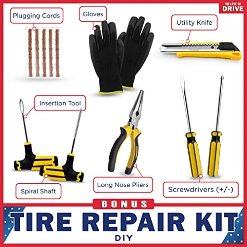 - ? Complete Repair Kit – Durable product that’s made to last. Avoid getting stranded or having to use a donut spare thanks to your tire plug kit. Use a range of purpose-built tools to shape, fill, and seal small punctures wherever you are.