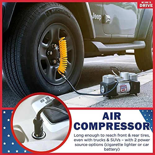 - ? Our Promise to You – Drive with peace of mind thanks to your travel air compressor and excellent customer service. Your air-and-repair kit is backed by our commitment to your safe, successful travels.