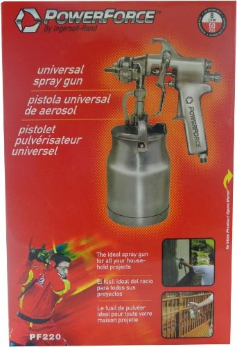 This siphon-feed spray gun can spray lacquer, enamel, stain, primers and urethane. Big areas or small, indoors or out, the 220 gets the job done.