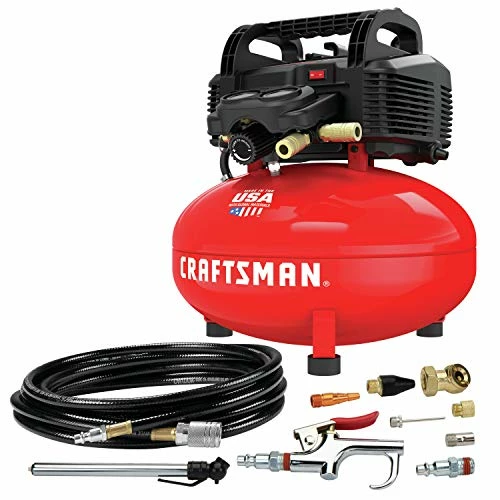 As I mentioned in previous reviews, I recently downsized and ended having an online auction company come into my house and wiped me out of so many tools that I wasn’t ready to part with. Unfortunately, on the day they came to categorize my stuff, I was sick in bed with a high fever and was unable to oversee what they ended up auctioning off. Two of the items that were auctioned off were both of my air compressors. I find air compressors great to have around as you never know when you’re going to walk out to your vehicle only to see a flat tire. So I decided to invest in a new air compressor but one with all the necessary hoses and accessories. It gives me great peace of mind that I will end up stranded in my garage with a flat tire. I’m very happy with the model I chose especially since it comes with all the necessary accessories. I do wish it had wheels but I couldn’t find a model with wheels and all the necessary accessories. To be honest, I kinda get confused with air compressors that don’t include all the accessories. I’m not a mechanic so I didn’t need a compressor that I would use on a daily basis. This Craftsman model basically has everything I need and it’s not too heavy to carry although I don’t plan on carrying it anywhere. So I’m giving it a positive review for folks who would like to have an air compressor but kinda get confused by the necessary accessories.Follow up. Today I finally “tested” the air compressor. It worked fine but I was unable to insert the hose and fittings unless the tank was empty. Even when I assembled everything, I found the part that you use to connect to a tire valve was not air tight despite having what I refer to as plumber’s tape on the threads. Note that where the hose connects to the air compressor was air tight. So I think I need to use a couple of pliers or wrenches to better tighten the accessories. I did try needle nose pliers but they only helped a little bit. I should mention that it still would fill a flat tire in it’s present condition. I also could easily reduce the pressure produced by the air compressor as I believe that would reduce the “leak” at the accessories into the hose. I still recommend this unit as I believe I’ll be able to make the accessories more air tight. I should also mention that I have significant arthritis in my hands so perhaps someone without arthritis would not run into the problems I did. One nice accessory is an “air gun” which is strong enough to air clean the floor of the garage by spraying the garage floor to the outside with the garage door open. Just make sure any “lightweight” items are on shelves.