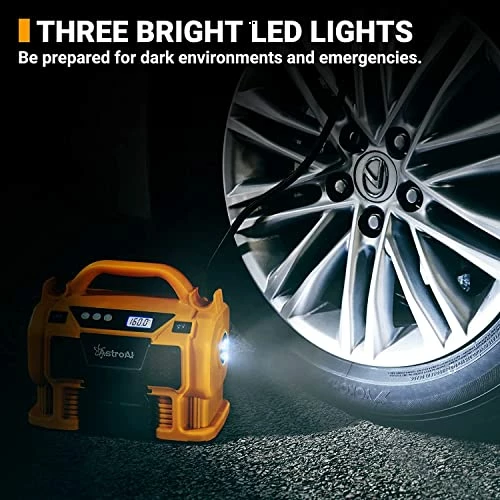 - Three Power Supply & Identified Automatically: This cordless compressor supports three types of power supply: AC, DC, and rechargeable battery packs. The updated system can identify the power supply itself without choosing the power mode. Please note that the 20V battery pack and battery charger are not included in this package. The battery and charger are sold separately.