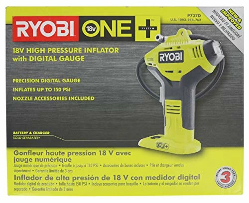 - SAVE MONEY AND TIME spent on purchasing extra accessories for other portable inflators. The Ryobi P737D boasts TWO high-pressure nozzles, a sports equipment needle, and a NEW ONBOARD DIGITAL PRESSURE GAUGE
